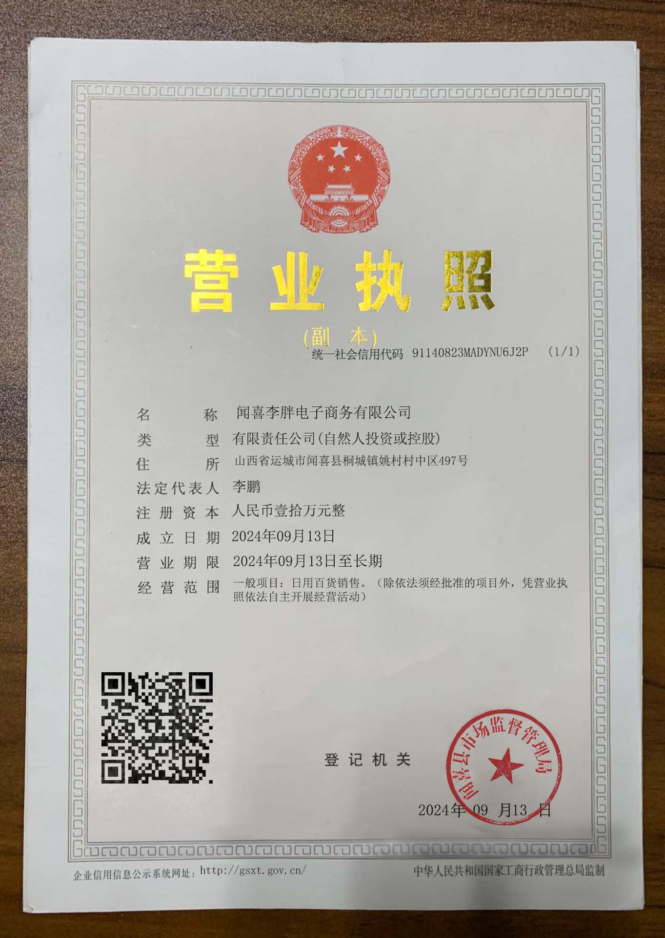 Corporate name:Wenxi Lipang E-commerce Co., Ltd.